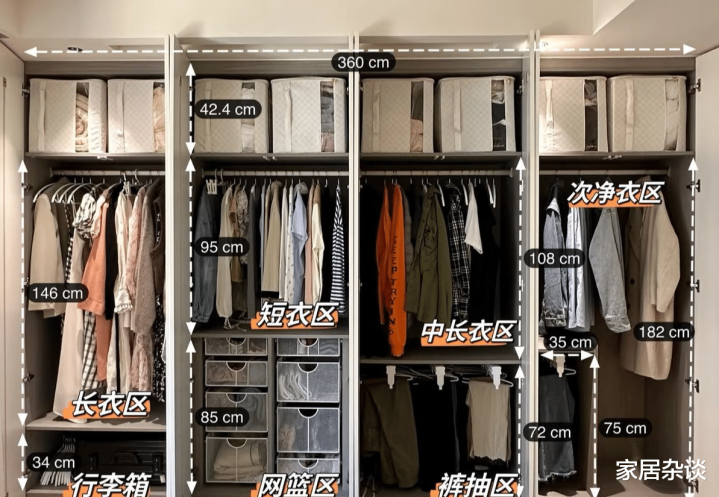 衣柜收纳,是衣服衣柜最基础的功。这里就牵扯到上面跟大家说的衣柜内部功能的划分。