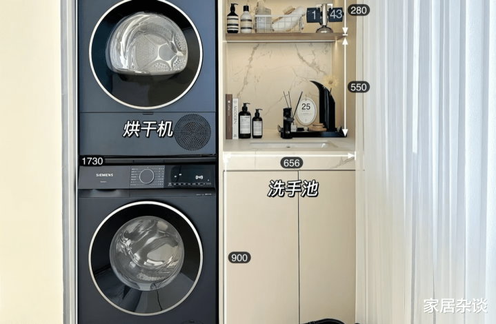 而在洗衣机的上面,是设置了一层隔板,用来放置脏衣。每次换下来的衣服,不洗的,就可以堆在这里,攒够了一起洗,非常方便。
