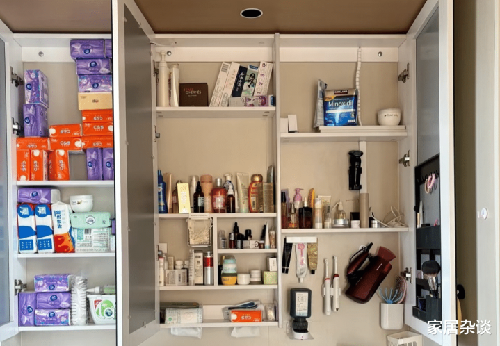 不过,给我的感受就是收纳能力明显变强了。以前,台面上的洗漱品化妆品,都可以放进镜柜里。