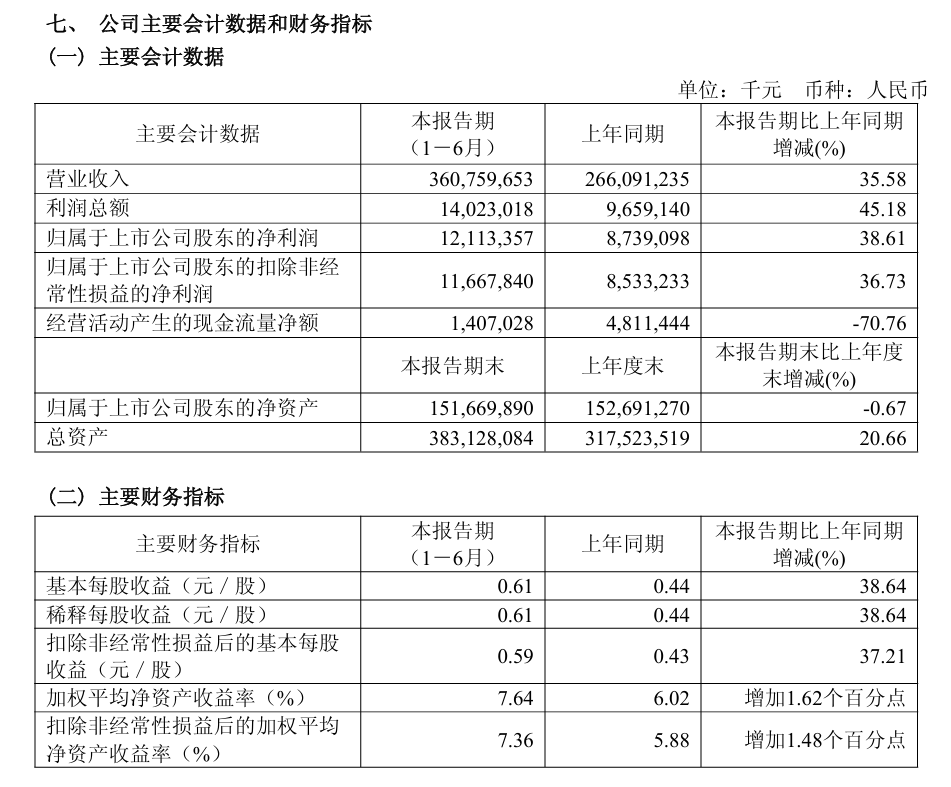 上半年,公司实现营收3607.6亿元,同比增长35.6%;实现净利润121.13亿元,同比增长38.6%。其中,公司第二季度单季营收首次超过2000亿元,达2003.45亿元,同比增长35.9%;净利润为68.86亿元,同比增长51.1%。第二季度,公司营收、净利润数据也均创下同期历史新高。